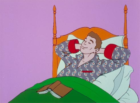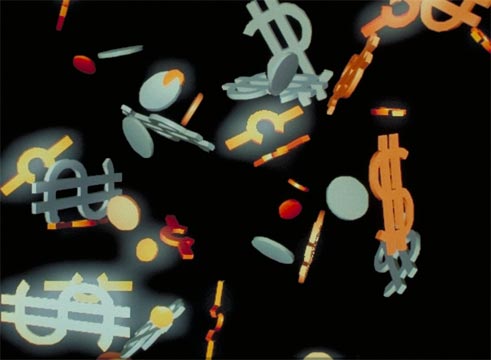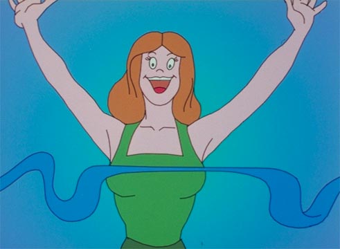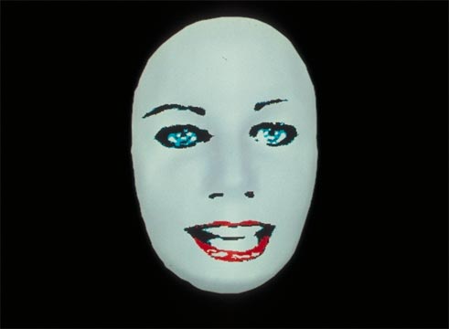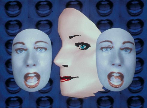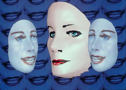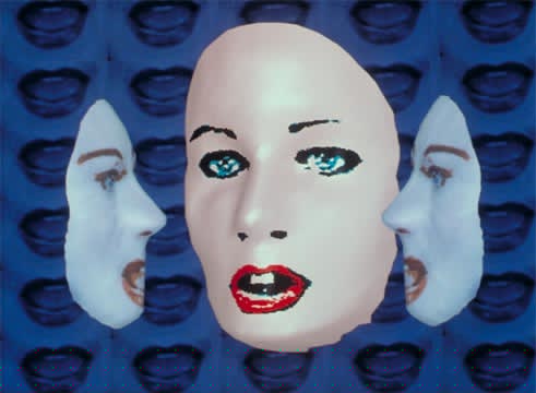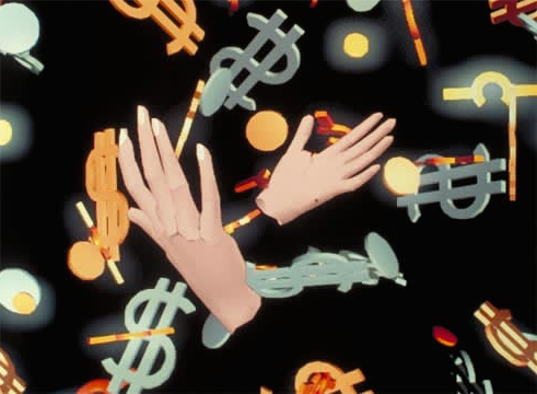 This award-winning video received wide international attention with the introduction of new music video stations such as MTV. As she playfully describes symbols of success, Allen’s work is designed in comic book style, as a moving collage of two- and three-dimensional digital animation, live-action and text graphics. A key element is her implementation of an optical illusion through a chorus of digital rotating masks.