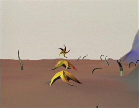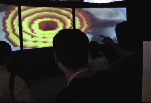 Second in a series of three interactive art installations that explore the role of human presence in a virtual world inhabited by artificial life.