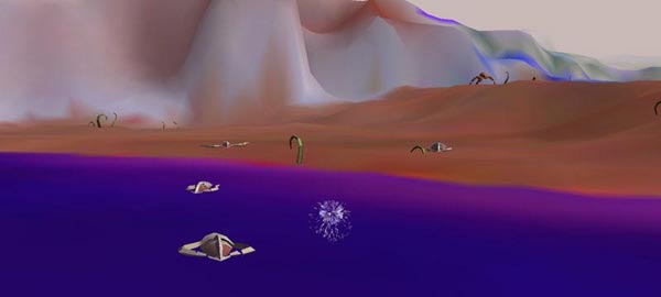 The Bush Soul (#3) is the third piece in a series of interactive artworks that explore the role of human presence in a virtual world inhabited by artificial life.