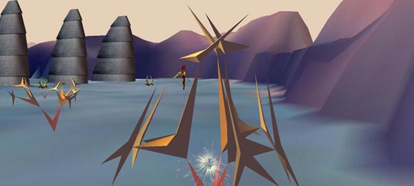 A force-feedback joystick provides both navigation and tactile sensations. It serves as a connection between your physical body and virtual soul. Through the joystick one can feel the "energy" of the environment as vibrations emanate from certain creatures and significant places in the virtual world.