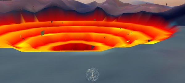 With this work the artist has created a living abstract world that responds to human interaction. Although influenced by video games, there is no conclusion or finality, only continual exploration and pleasure.