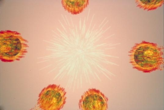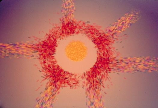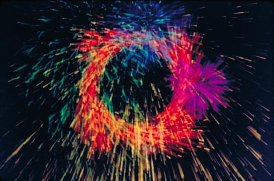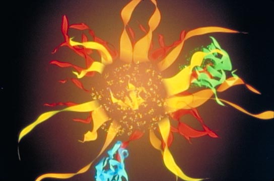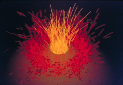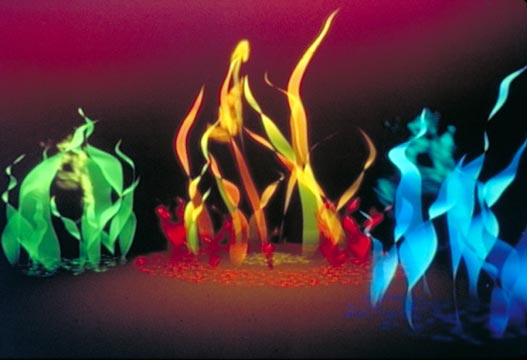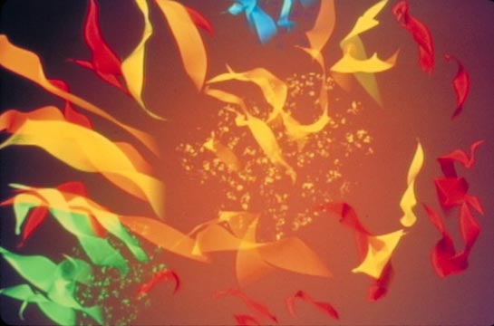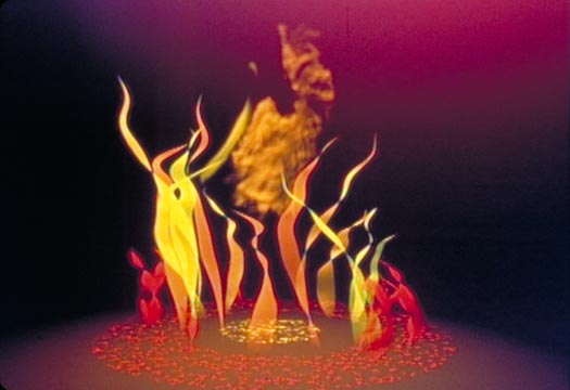 In Fire and Air traditonal symbols of Spain - the sun, the ritual use of fire, fireworks, fiestas and flamenco dancing - are presented in a unique style of computer animation. Particle system software and specialized programs were utilized to create intricate, natural, flowing forms and movement.