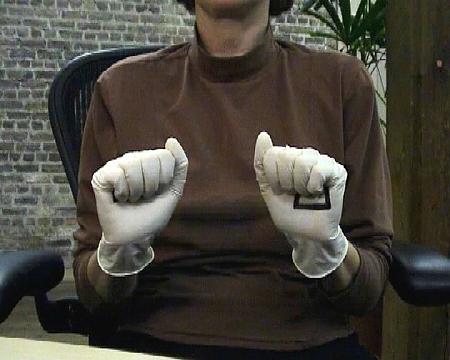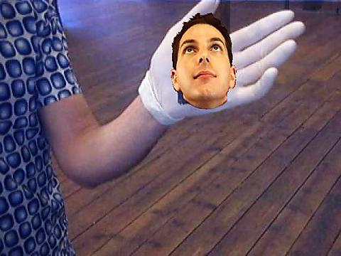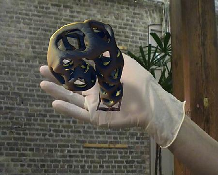Sleight of Hand explores the coexistence of virtual and real elements (mixed reality) for large-scale art installations. Visual, graphic markers are applied to deformable gloves and t-shirts that can be produced in bulk and given to installation visitors.