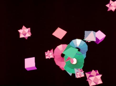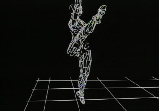 Inspired by Bauhaus Theater, this historical work was created as part of an art/research experiment merging performance and advanced technology, creating an illusion of dancing abstract forms. One of the earliest examples of human motion simulation created on the computer. Music by Carter Burwell.
